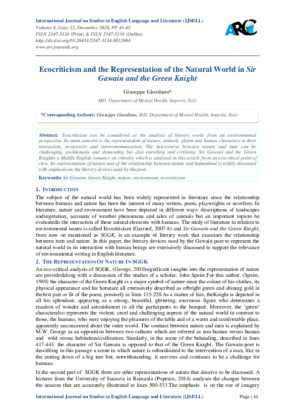 Pdf Ecocriticism And The Representation Of The Natural World In Sir Gawain And The Green Knight Giuseppe Giordano Academia Edu